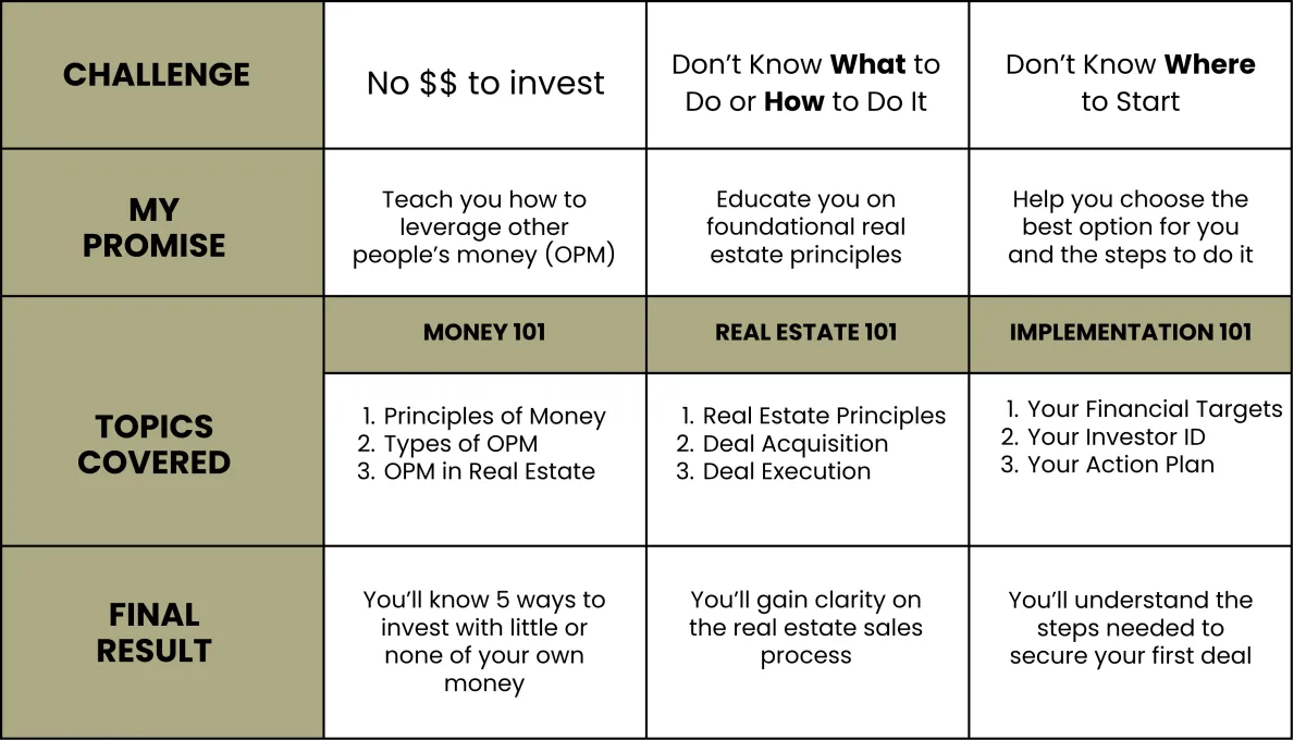 The 90-Day Cash Flow Accelerator Program gives you expert guidance to invest with other people’s money, analyze deals with confidence, and create a personalized action plan.